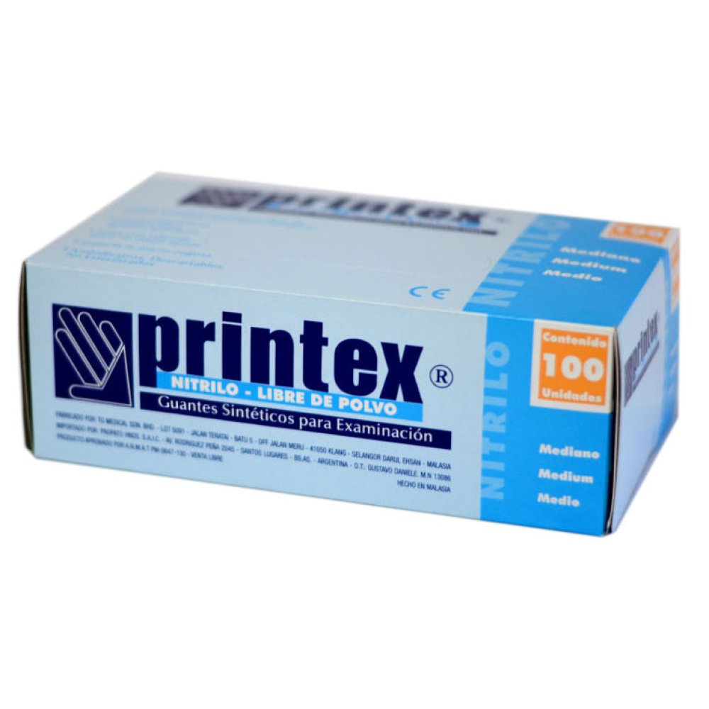 Guantes examinación Nitrilo Azul Printex, caja x 100 unidades