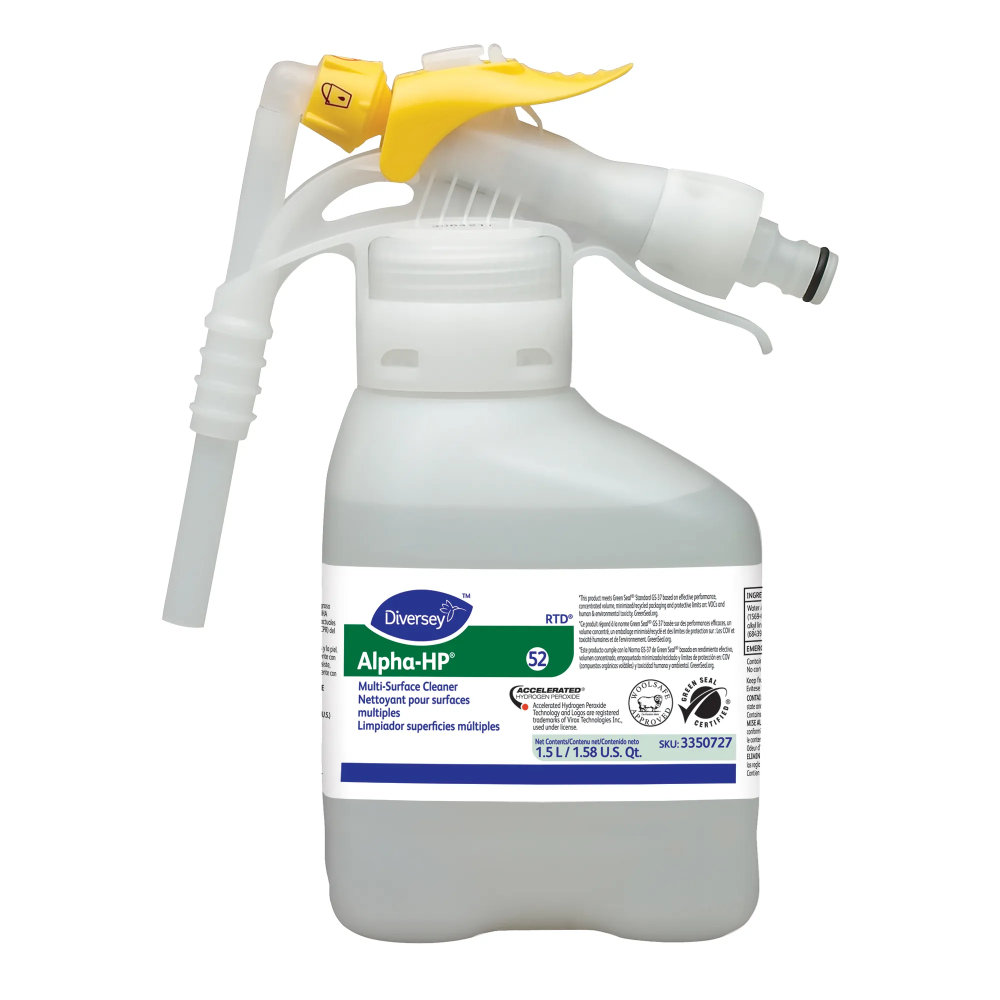 Limpiador desinfectante multi propósito todo en uno, basado en la tecnología patentada AHP® (PERÓXIDO DE HIDRÓGENO ACELERADO) para usarse en la mayoría de las superficies duras y lavables no porosas.